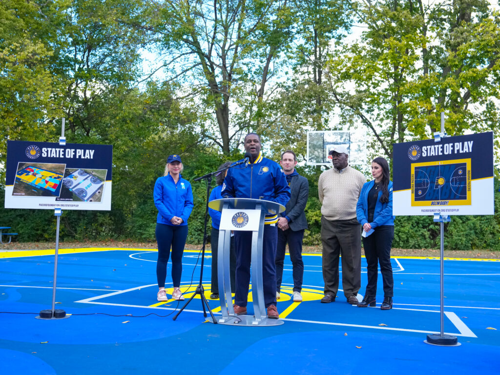 Over the next decade, the Pacers Foundation will revitalize basketball courts at parks and community centers across Indiana through State of Play, an effort tipped off Wednesday at Frederick Douglass Park in Indianapolis.